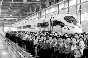 | 国产时速350公里动车组在唐山客车公司下线现场(4月11日摄)。 新华社发 |