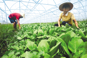 每年5月份收获哈密瓜以后,三亚市城郊周围总会闲置下大量土地。一些村民瞄准此时机,抓住5月至9月这段时间,利用闲置土地,种植时令蔬菜。凤凰镇妙林村王峰夫妇在闲置的大棚里种植蔬菜,亩收入已突破5000多元。 本报记者 程范淦 王红卫 摄