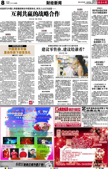 海南日报 财经新闻 008 2008-07-311 2008年07月31日 星期四