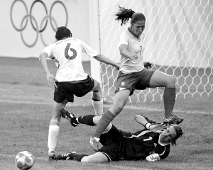 据新华社沈阳8月6日电 (记者周之江)世界冠军对阵世界亚军,2008年北京奥运会女足比赛首战,德国遭遇巴西,过程不乏精彩,缺少的只是进球。0比0的平局说明,两支超级强队确实棋逢对手。
