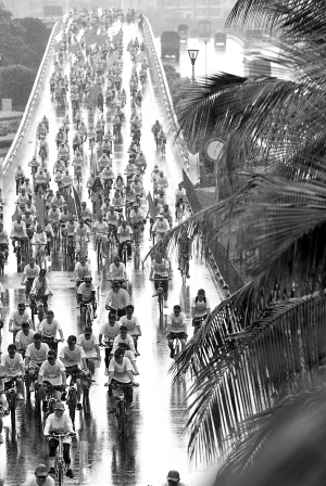| →8月2日,距离2008北京奥运会仅有6天时间,1000名来自社会各界的海口市民自发进行了“千骑迎奥运”、“千人摆五环造型”等活动喜迎奥运到来。