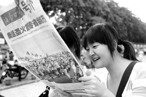 | 5月6日,为庆祝圣火在海南传递,海南日报特出四个版的号外。 这是奥运火炬内地传递的第一份号外。 本报记者 苏建强 摄