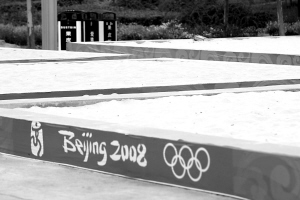 | ↑8月4日,在北京朝阳公园,北京奥运会沙滩排球场地上,铺着来自海南岛东方市八所的天然沙子。