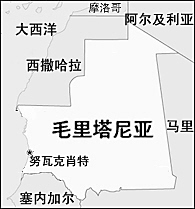 毛里塔尼亚位于非洲撒哈拉沙漠西部,与阿尔及利亚、马里和塞内加尔接壤,西濒大西洋,面积103万平方公里,人口310万,官方语言阿拉伯语,通用法语,首都努瓦克肖特。