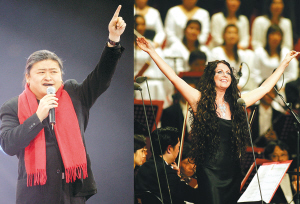 上右:2005年12月31日晚,2006年北京新年音乐会在人民大会堂举行,被誉为“天籁歌后”的英国歌星莎拉·布莱曼倾情演唱。 新华社发 |