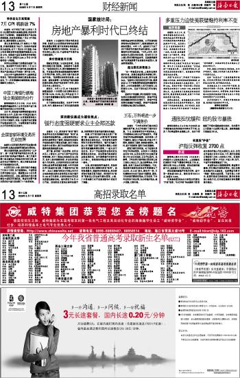 海南日报 财经新闻 013 2008-08-071 2008年08月07日 星期四