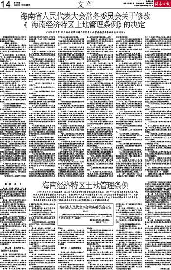 海南省人民代表大会常务委员会关于修改《海南经济特区土地管理条例》的决定