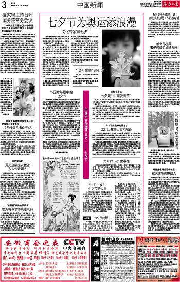 海南日报 中国新闻 003 2008-08-071 2008年08月07日 星期四