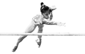 何可欣在高低杠训练中。