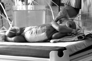 8月7日,在孟加拉国首都达卡的一家医院里,一个刚做完分离手术的连体婴儿躺在加护病房的病床上。另外一个连体婴儿在经过超过8个小时的分离手术后死亡。 新华社发
