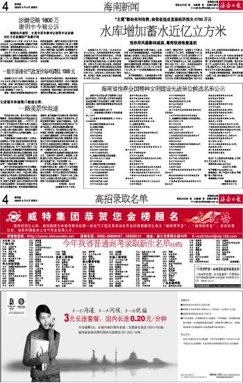 | 海南日报 海南新闻 004 2008-08-081 2008年08月08日 星期五 |