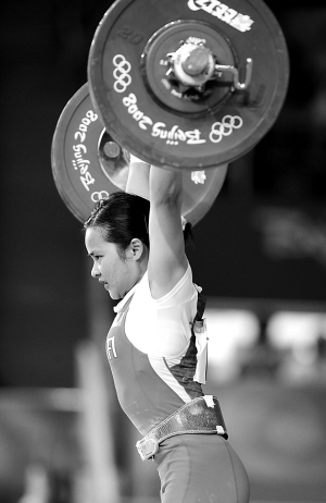 ← 8月9日,中国选手陈燮霞在北京奥运会女子48公斤级举重比赛中以212公斤的总成绩获得冠军,为中国代表团捧得首金。 新华社发