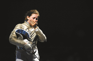 胜利的脸 从笑到哭 8月9日,美国选手贝卡·沃德在国家会议中心击剑馆举行的北京奥运会女子佩剑个人3-4名决赛中战胜俄罗斯选手索菲娅·韦利卡娅后,先笑后泣,个中滋味,耐人寻味。