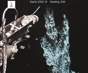 在今年6月的远征考察中,挪威卑尔根大学与位于洛桑的瑞士联邦技术学院的研究团队发现了这几个海底热喷泉裂口。根据探测设备的测量,它们位于2400米深的海底,完全照不到阳光,像煮沸的醋一样的400摄氏度的海水不断喷射而出。