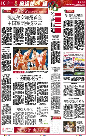 海南日报 奥运快报 010 2008-08-101 2008年08月10日 星期日
