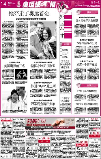 海南日报 奥运快报 014 2008-08-101 2008年08月10日 星期日