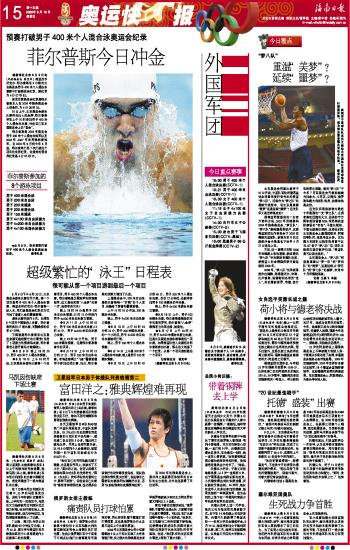 海南日报 奥运快报 015 2008-08-101 2008年08月10日 星期日
