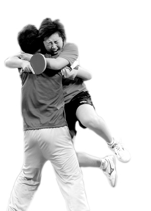 ←8月15日,新加坡队冯天薇(右)与教练刘国栋相拥庆贺胜利。 新华社发