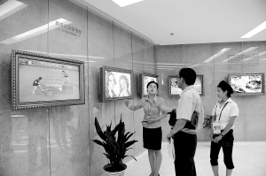 8月15日,参观者在参观画框式仿古流媒体电视。 由青岛海信集团推出的高清晰度画框式仿古流媒体液晶电视近日与顾客见面,这种电视不仅具有一般电视的功能,还可播放JPEG、MP3、MP4等,并可实现读写、编辑高分辨率照片。这款流媒体电视与众不同之处还在于它的外观和制作工艺,整个电视的色调采用画框式仿古制作工艺,人们在不看电视的时候可以欣赏到一幅幅古典油画。 新华社记者范长国摄