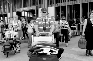 | 2007年11月7日上午,西伯利亚首航三亚的包机带着227名俄罗斯游客飞抵三亚。(资料照片) 本报记者 张杰 摄 |