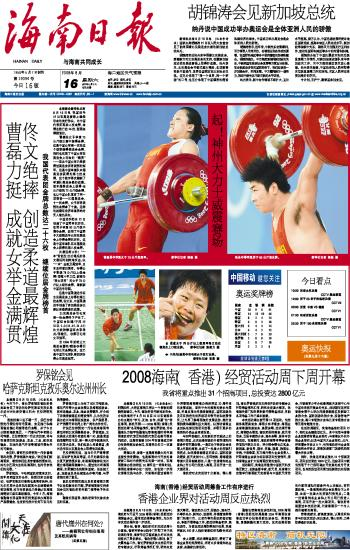 海南日报 头版 001 2008-08-161 2008年08月16日 星期六