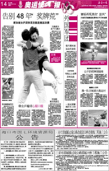 海南日报 外国军团 014 2008-08-161 2008年08月16日 星期六