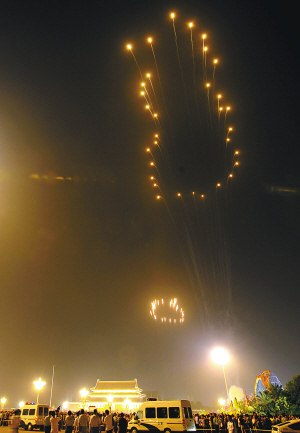 | 天安门广场上空的焰火:历史的足迹。 新华社发 |