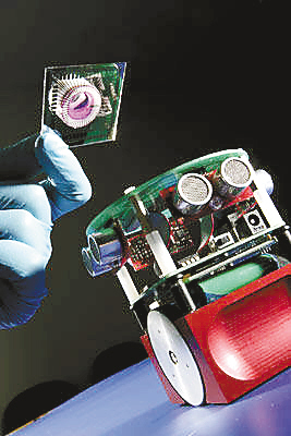 据设计这个“鼠脑机器人”的英国雷丁大学科研人员介绍,他们从老鼠大脑中提取了数万个神经细胞,放置在含特制酶的溶液里,然后再将它们转移到营养丰富的培养基中。培养基容器长宽均为8厘米,与数个分别有60个电极的电子矩阵相连接。通过这些矩阵和蓝牙无线通信技术,鼠脑细胞能发出电子脉冲,驱动机器人的轮子实现移动。除此之外,该机器人不受人或电脑控制。