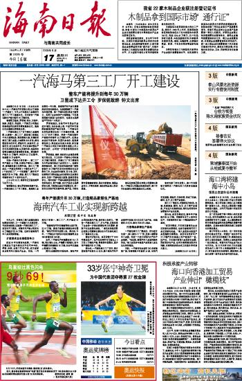 海南日报 头版 001 2008-08-171 2008年08月17日 星期日