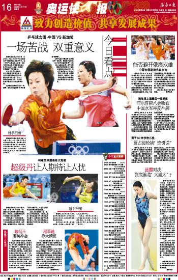 海南日报 奥运快报 016 2008-08-171 2008年08月17日 星期日