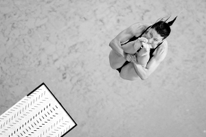 依然是那副波澜不惊的表情。帕卡琳娜用淡绿色毛巾擦干身上的水珠,平静地理了理头发,然后慢慢走上跳板,转身背对泳池。“向后翻腾两周半”,她在空中划出一道漂亮的弧线,稳稳压住水花。