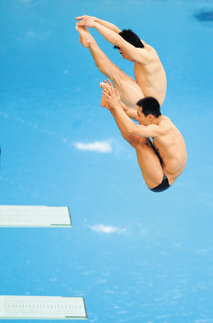 19日20时30分,何冲、秦凯(见右图,新华社发)这对一难一稳的“双保险”将出战北京奥运会男子3米跳板,目标直指中国跳水的第六枚金牌。 在预赛中,积分榜首多次易主。何冲、秦凯在开局不利的情况下顶住压力,最终以前两名的身份进入半决赛。几位主要竞争对手也表现出良好的状态。卡斯蒂略在比赛中顺利完成了难度系数为3.9的世界第一难度动作5355B(反身翻腾两周半转体两周半屈体)。俄罗斯“跳水沙皇”萨乌丁也有上佳发挥,在预赛中名列第四。此外,日本名将寺内健、加拿大“神童”德斯帕蒂、俄罗斯名将多布罗斯科克、澳大利亚选手纽贝里等人都顺利获得半决赛资格。 (据新华社电) |
