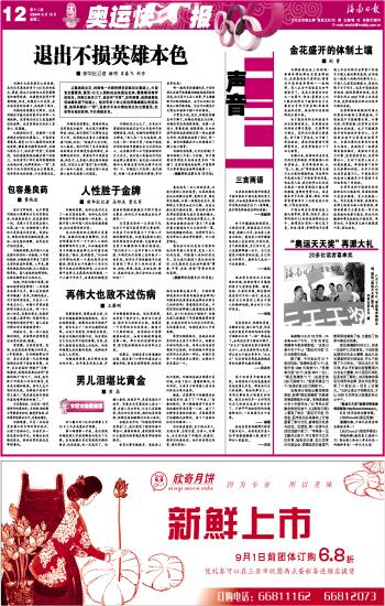 海南日报 奥运快报 012 2008-08-191 2008年08月19日 星期二