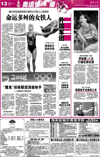 海南日报 奥运快报 013 2008-08-191 2008年08月19日 星期二