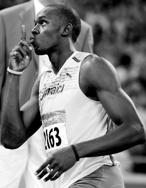 | 八月十九日,牙买加选手尤塞恩·博尔特在比赛前做鬼脸。 新华社发 |