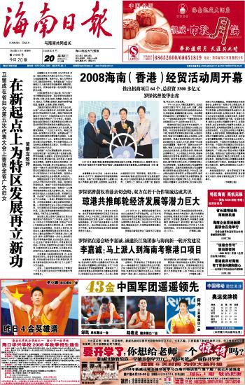本报香港8月19日电 (特派记者吴斌 黄晓华)今天下午,香港维多利亚港湾显得格外美丽,坐落于此的香港会展中心新翼201室人声鼎沸,座无虚席,花篮鲜艳,乐曲悠扬,由省政府主办的“特区海南,商机无限———2008海南(香港)经贸活动周”在这里隆重开幕。来自中央政府驻港机构,香港和海南的政界、 工商界人士1000多人欢聚一堂,畅叙友情,寻求合作,共谋发展。