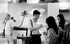 | 海南(香港)经贸活动周的展馆布置热带海洋特色鲜明,让到场嘉宾仿佛进入了一个“在港度假天堂”。 本报特派记者 王军 摄 |