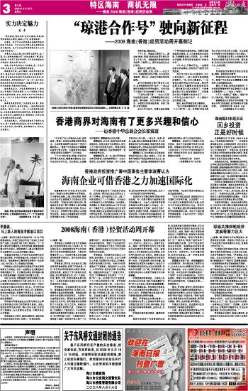 海南日报 特区海南 商机无限 003 2008-08-201 2008年08月20日 星期三