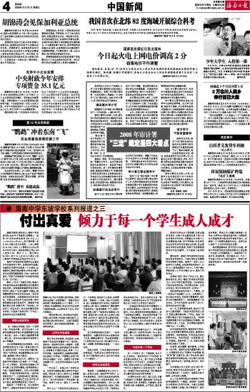 海南日报 中国新闻 004 2008-08-201 2008年08月20日 星期三