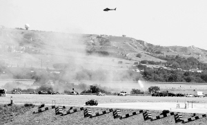 | 八月二十日,在西班牙马德里机场,紧急救援车辆和直升机在飞机失事现场参与救援。 新华社/路透 |