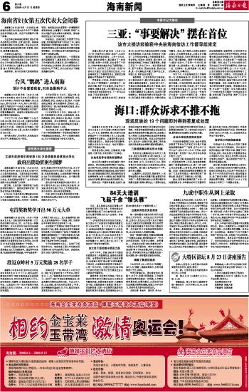 海南日报 海南新闻 006 2008-08-211 2008年08月21日 星期四