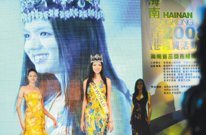 | 八月二十一日,我省经贸活动周在香港会展中心举行了海口、三亚综合推介会,世界小姐在推介会上演绎了“美丽之岛”。