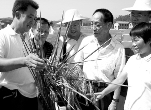 据了解,2000年,湖南省率先在全国实现亩产700公斤的超级杂交稻研发第一期攻关目标。2004年,比原计划提前1年实现了亩产800公斤的第二期目标。为实现第三期亩产900公斤的目标,在袁隆平院士的直接指导下,湖南省超级稻协作组成员单位近年来培育了一批具备高产潜力的苗头组合,如中稻的Y58S/湘恢3218、双8S/0293、Y优7号、P88S/747、Y两优302等,并积极研发了与之配套的超高产栽培技术,取得了可喜进展。