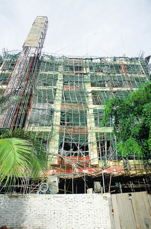 据了解,去年9月份,位于三亚市西河西路春园路段(原海堤西二路)一栋规划报建4层住宅楼,却违规加建至9层。期间不断被周围群众投诉,但历时几个月没有任何部门的处理。去年11月27日,此事经本报独家曝光后,引起三亚市领导高度重视。省委常委、三亚市委书记江泽林专门召开市委常委会决定拆除该违章楼。但当时,该楼业主却主动表示,愿意自行拆除违章部分,这一请求获得三亚执法部门同意。去年12月10日,该楼已开始拆除违建部分,但该楼业主却明着拆除,实则抓紧装修并又加盖一层半。这一情况再次经媒体曝光后引起社会广泛关注,该楼成了三亚著名的“长高楼”。