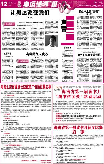 海南日报 奥运金报 012 2008-08-221 2008年08月22日 星期五