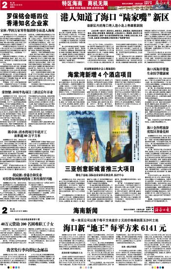 海南日报 特区海南 商机无限 002 2008-08-221 2008年08月22日 星期五