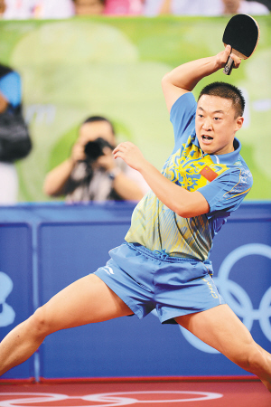 8月22日,在乒乓球男子单打1/4决赛中,马琳以4比0战胜韩国选手吴尚垠,挺进半决赛。 新华社发