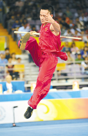 | 中华台北选手彭伟群南拳南棍获得第二。 新华社发 |