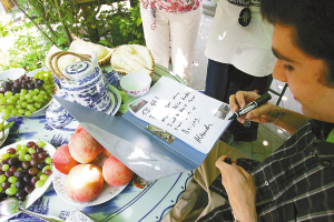 在忙完后,Kane很是乐意地接受了意大利和芬兰记者的采访,对她来说,讲述在北京的经历是件开心的事情。“能住在传统的北京民居,体会中国文化,让我们觉得很幸运,主人很细心……”话题打开后,Kane滔滔不绝,她在四合院以及胡同里感受到的最真实的北京生活,以及这里最热情友好的当地人,这一切都似乎让她感动与留恋。而面前的欧洲记者似乎也被她在“奥运人家”里的独特体验所吸引,看到主人王克静不时端上洗净的葡萄、榴莲、桃子等新鲜水果,伊莲情不自禁地停下采访,转身用中文跟主人要了名片,她打算奥运结束后,回国说服父母来四合院里住着度假。