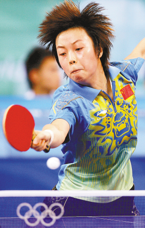 张怡宁战胜队友王楠,成功卫冕乒乓女单冠军。 新华社记者 鲍菲菲 摄